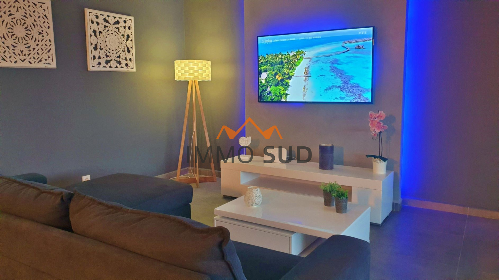 3 chambres climatisées, 2 salles de bains, 2 WC.