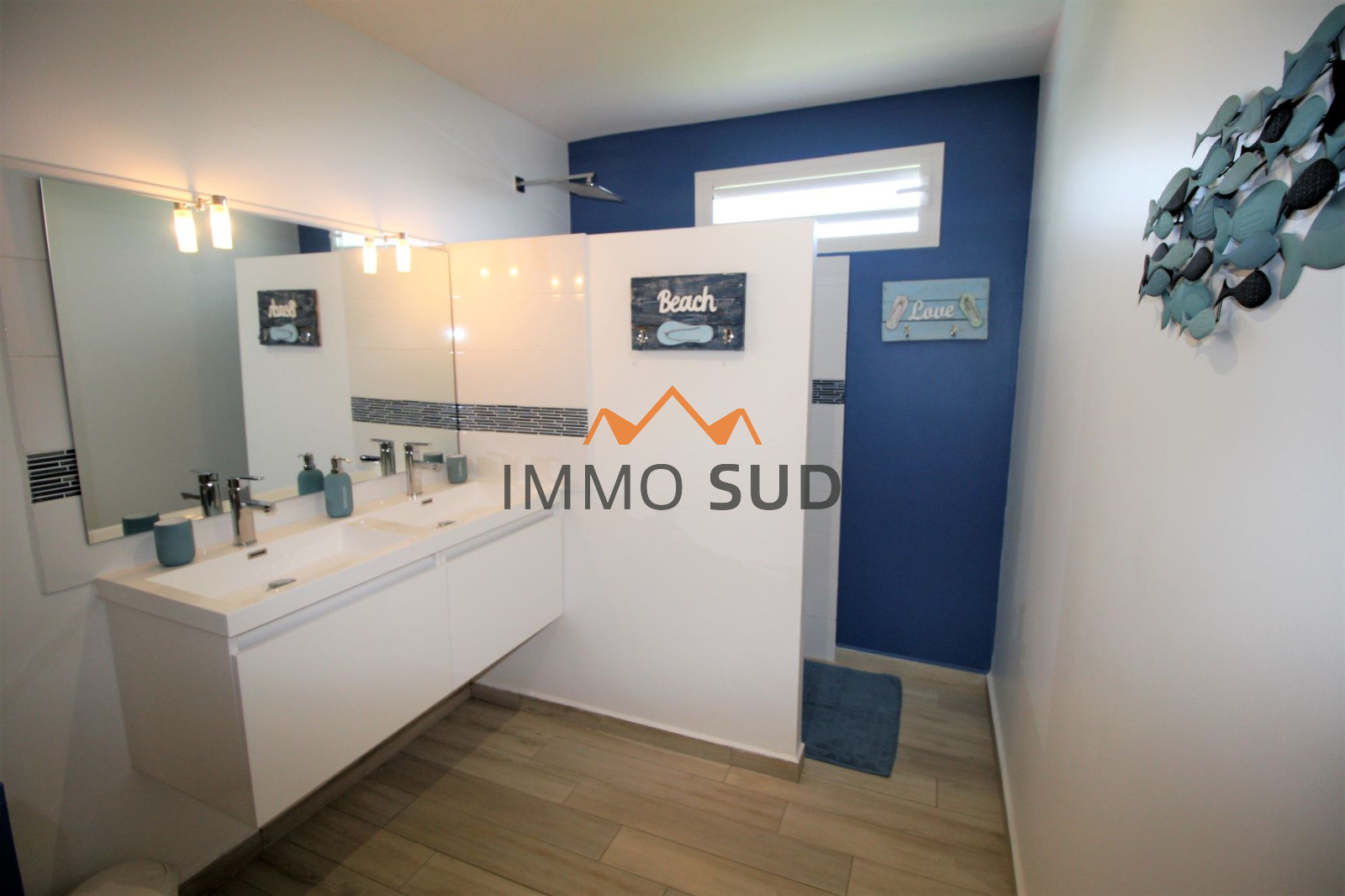 Une 2ème salle de bain avec double vasques, douche à l'italienne et WC pour les chambres 2 et 3