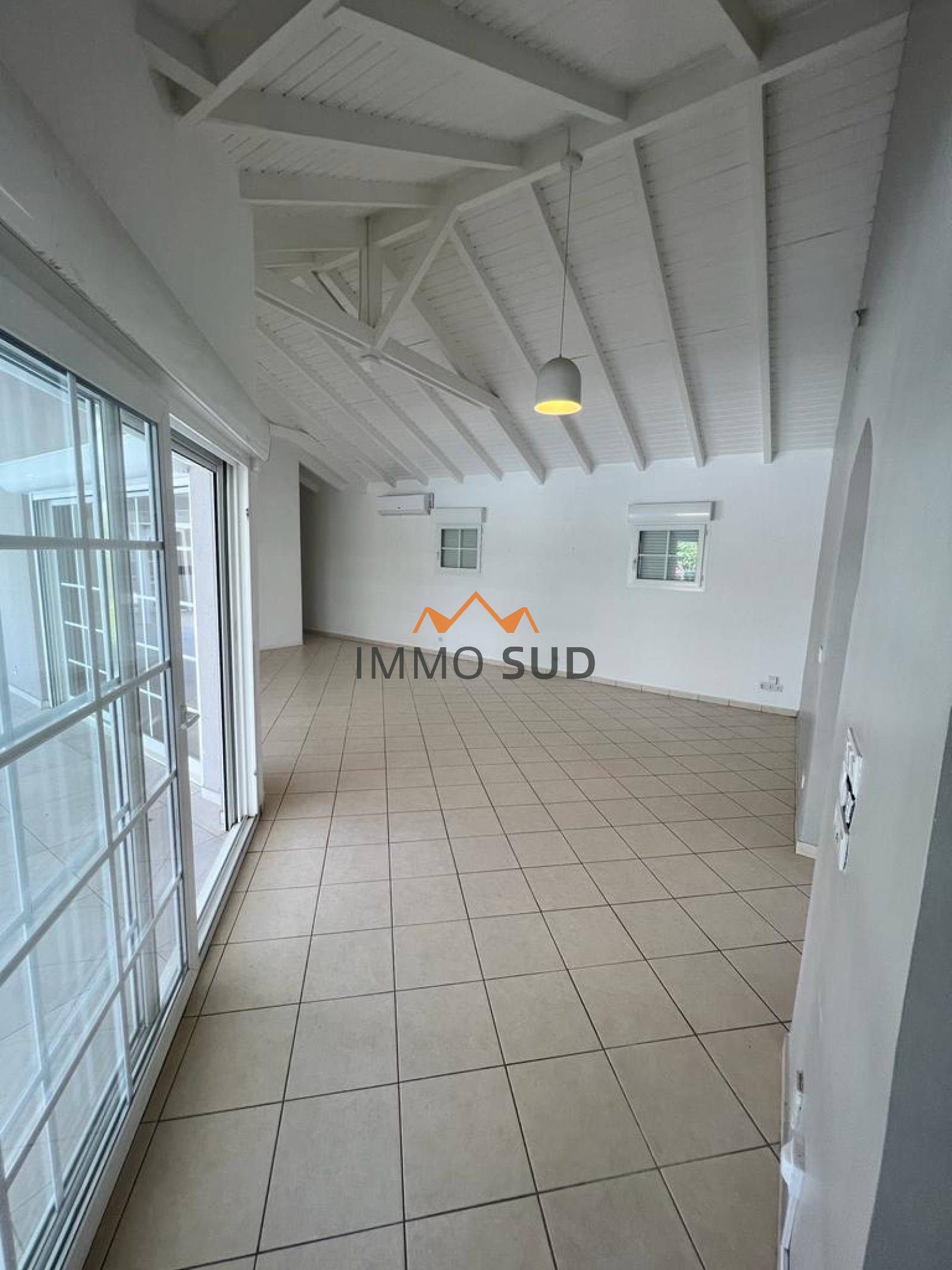 Le Gosier (97190)- A LOUER - Située dans un quartier calme et résidentiel à l'abri des regards vous béneficiez d'un emplacement de qualité : vous êtes proche des grands axes et commodités. La villa est arborée d'arbre fruitier sur un terrain de 1000 m2 cloturé avec portail électrique, portillon ainsi que deux places de parking couvertes.