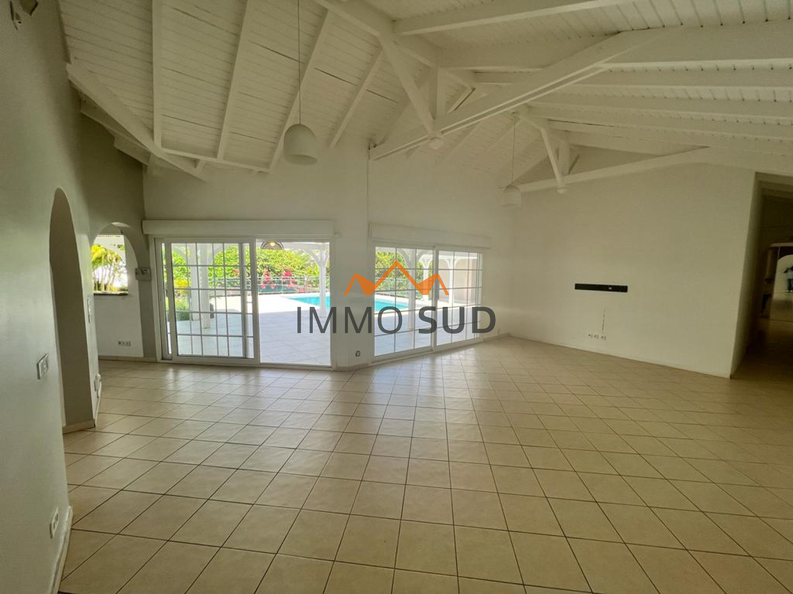 Entierrement climatisée la villa (de plain pied) est composée d'une grande pièce à vivre avec hauteur sous plafond donnant sur une grande terrasse rennové l'an dernier avec garde corps d'une superficie de 120 m2 donnant sur une piscine au sel (9x4), une grande cuisine ouverte aménagée et équipée (plaque, hotte, four, four à micro onde, lave vaisselle) avec son cellier attenant ayant une machine à laver (8kg) et un sèche linge.